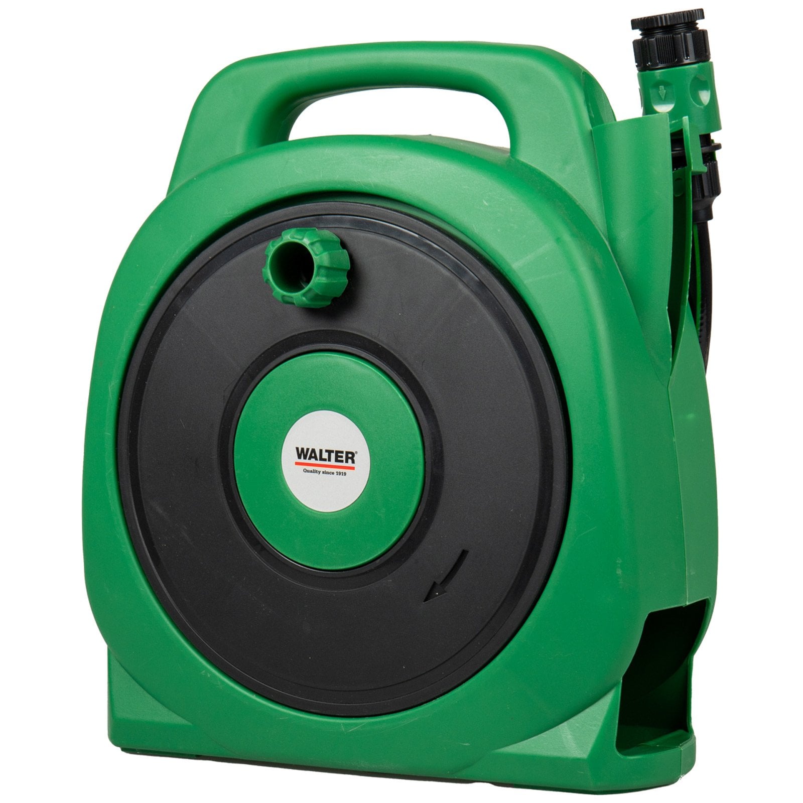 - Mit dem WALTER Schlauchaufroller 15 m wird die Gartenarbeit leichter denn je. Dank der 15 m Schlauchlänge hat der Schlauch einen großen Arbeitsradius, um Blumen, Sträucher, Hochbeete, Hecken und noch vielen weiteren Bereichen mühelos zu bewässern. Der Schlauch lässt sich mit geringer Kraft ausrollen und mit der Kurbel wieder einrollen. Die Bewässerungsdüse ist verstellbar und abschraubbar. Mit der integrierten Halterungen für die Düse und dem Verbindungsstück hat alles seinen Platz.