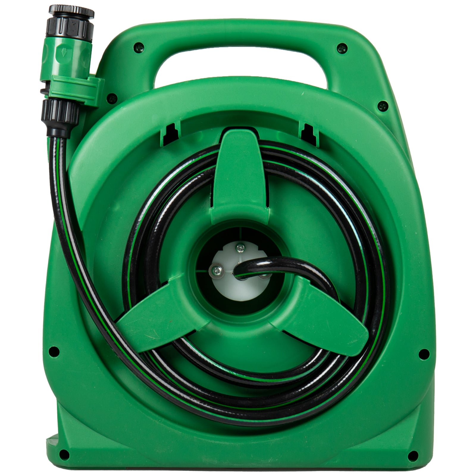 - Der Schlauch kann mit einem Arbeitsdruck von bis zu 8 Bar verwendet werden. Dank des Schlauchaufrollers ist das Abknicken des Schlauches ein Problem der Vergangenheit. Durch das gewebeverstärkte Material ist der Schlauch langlebig und von hoher Qualität. Er ist sehr kompakt aufgrund seiner Abmessungen von Länge: 27 cm, Breite: 10,5 cm und einer Höhe von 32 cm. Der integrierte Handgriff sorgt für die perfekte Handhabung und einem leichten Transport.