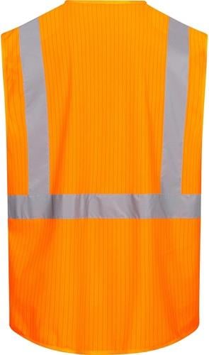 EN ISO 13688/EN ISO 20471 Kl. 2/EN 1149 · 100% Polyester · 120 g/qm · mit Carbon-Faden · zwei umlaufende Reflexstreifen · mit Schulterreflexstreifen für besonders gute Sichtbarkeit · mit Reißverschluss · D-Ring · zwei Seitentaschen · Smartphone-, Stift- und ID-Tasche auf der Brust, praktische Schlaufe für z. B. Mobiltelefone oder Taschenlampen Weitere technische Eigenschaften: · Stoffgewicht ca.: 120g/m²