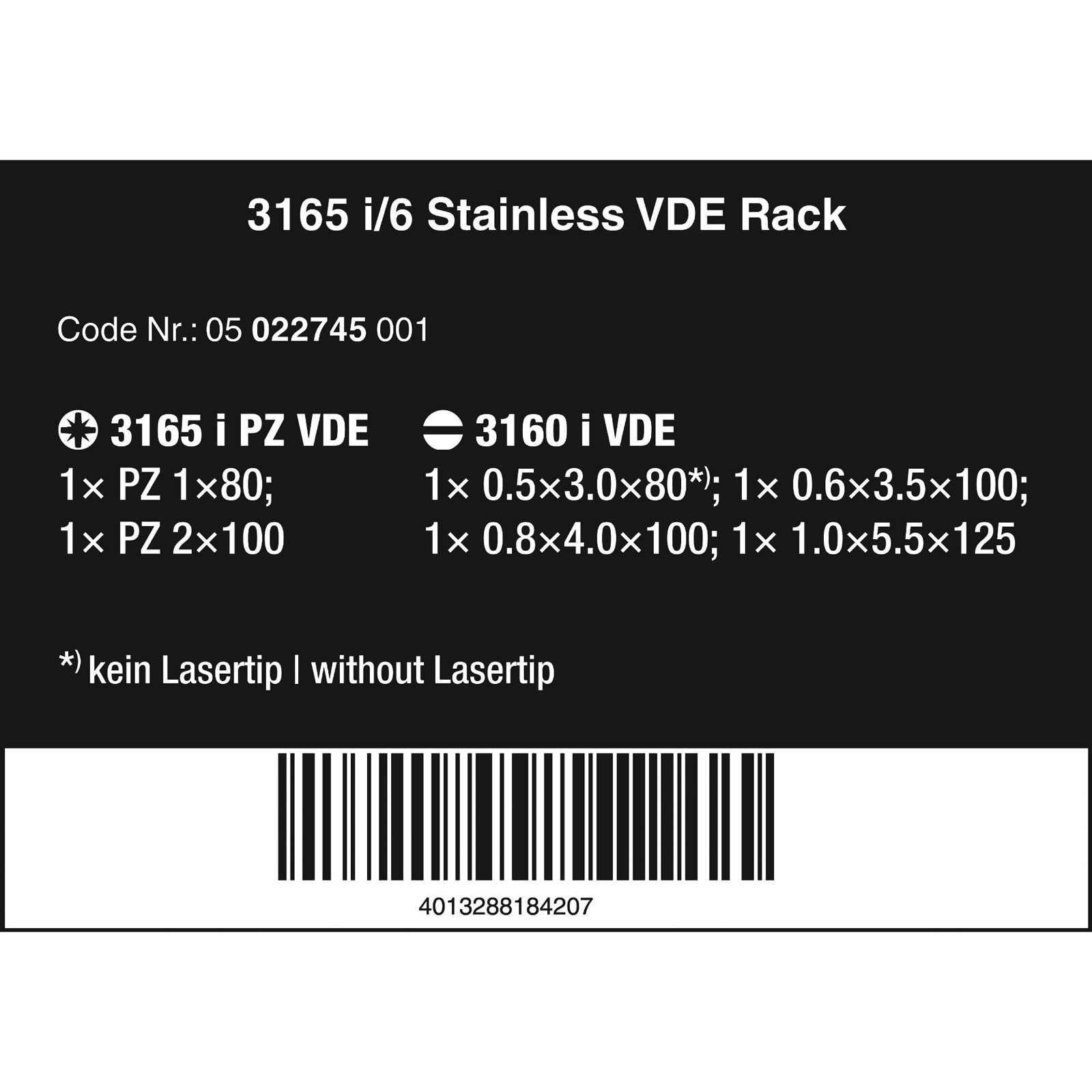 "Wera 3165 i/6 Schraubendrehersatz, Edelstahl + Rack - 05022745001"