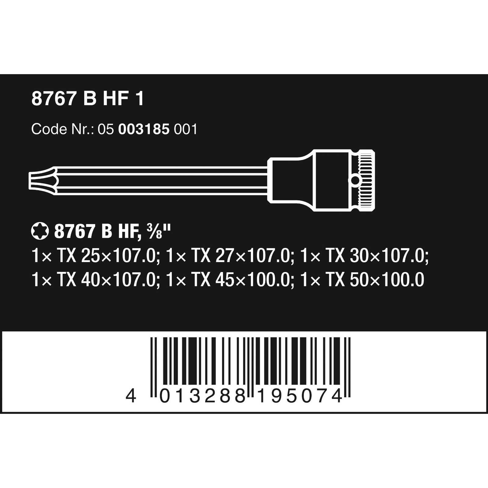 1x Wera 8767 B TORX® HF 1 Zyklop Bitnuss-Satz TORX®, mit 3/8"-Antrieb, mit Haltefunktion