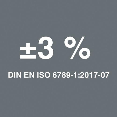 - Auslösegenauigkeit ± 3 % gemäß DIN EN ISO 6789-1:2017-07 Weitere technische Eigenschaften:
