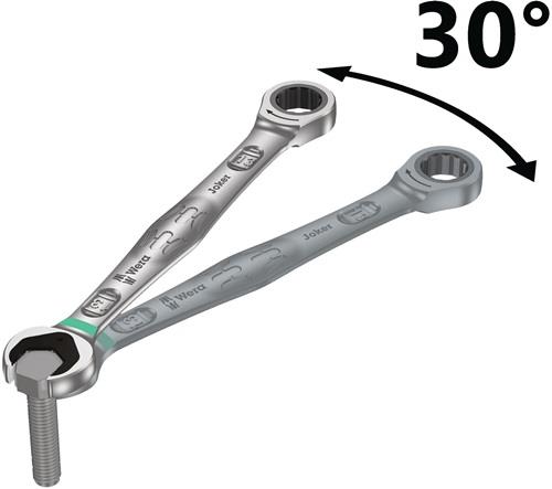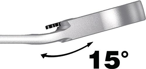 - Rückschwenkwinkel von nur 30° auf der Maulseite zur Vermeidung des zeitintensiven Wendens des Schlüssels beim Schrauben