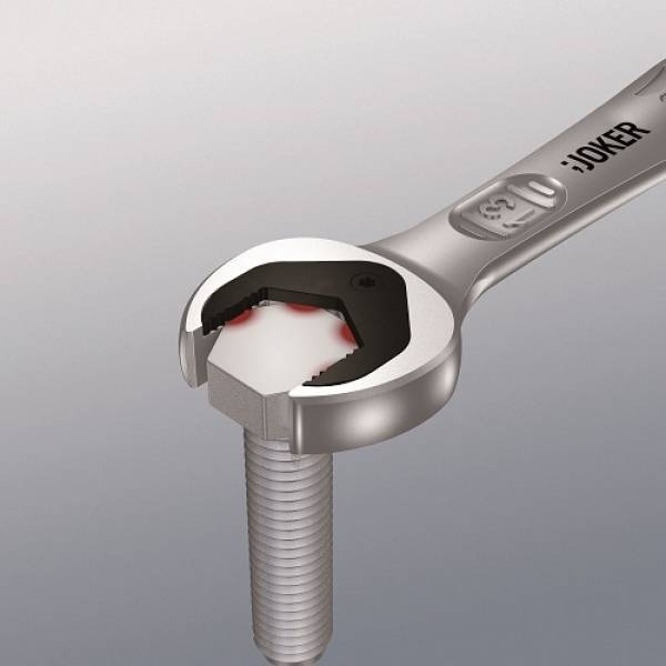 - Ratschenmechanik auf der Ringseite mit außergewöhnlich hoher Feinverzahnung von 80 Zähnen für Flexibilität auch in engen Bauräumen
