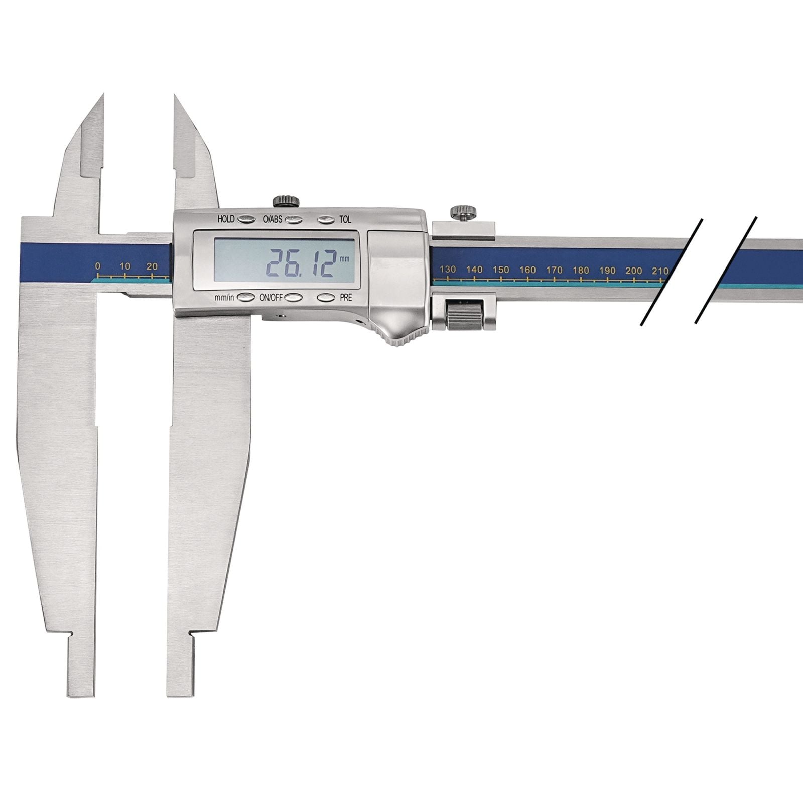 digital · Elektronikgehäuse aus Metall · mit Messerspitzen · mit Feststellschraube und Feineinstellung Funktionen: Ein-/ Ausschaltung · Nullpunktsetzung an jeder Stelle Lochmaßansatz für Innenmessungen = 20 mm Weitere technische Eigenschaften: · Ableseart: digital · prüfpflichtig: ja