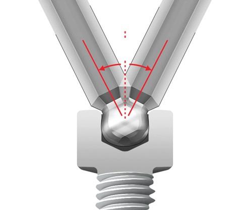 - Mit Kugelköpfen (ermöglicht das Schrauben bis zu einem Winkel von 25°) und Halteringen für die Schrauben (ab Größe 3 mm)