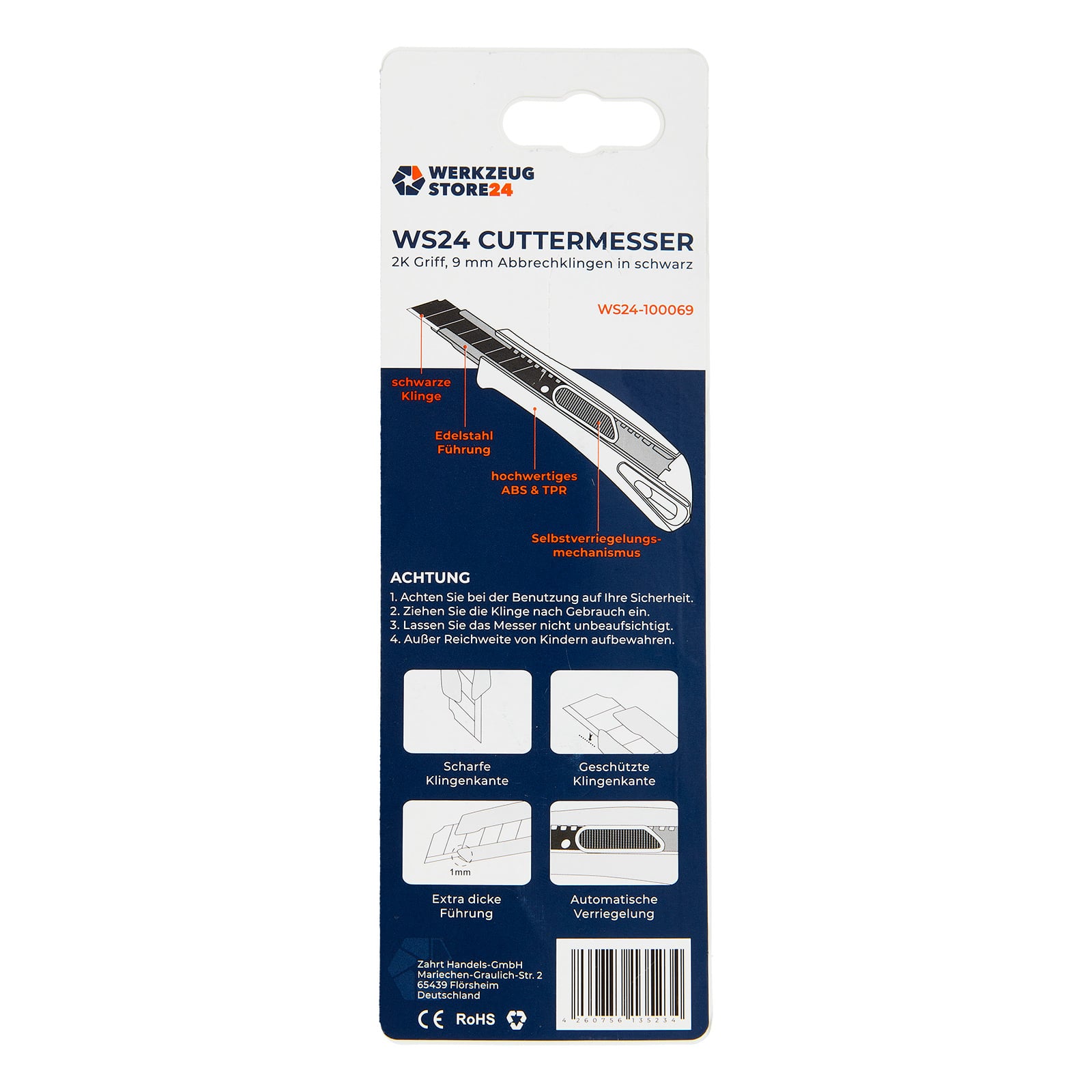 "WS24 Cuttermesser 2K Griff 9 mm Abbrechklingen schwarz"