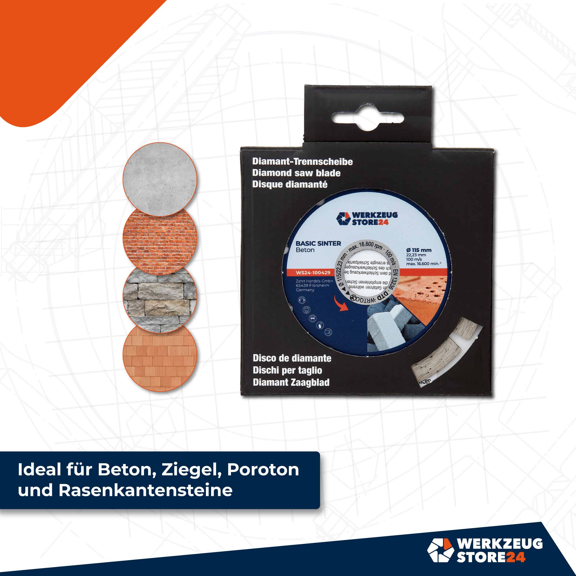 - 1x WS24 Diamanttrennscheibe Basic Sinter Beton 115 mm