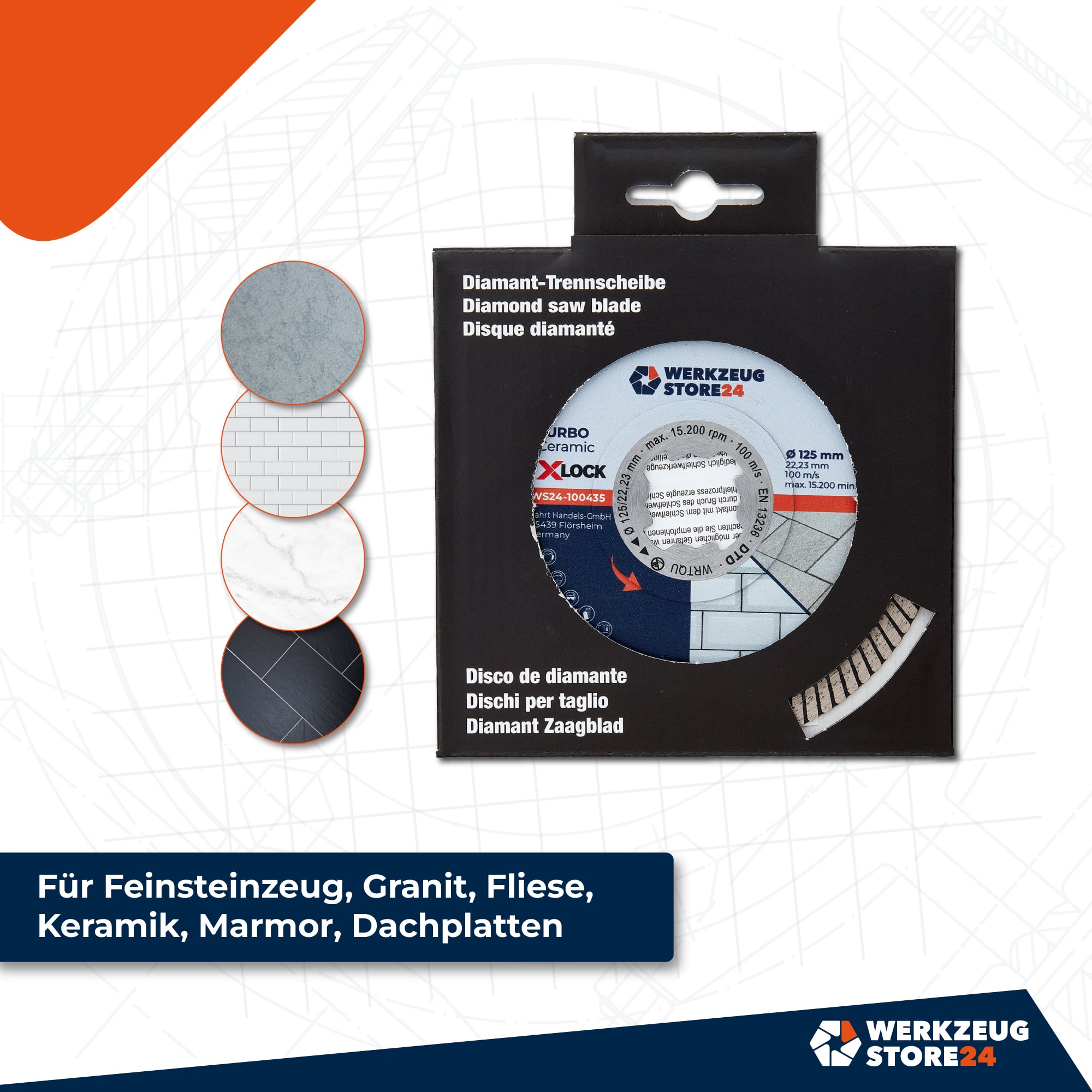 - 1x WS24 Diamanttrennscheibe X-Lock® Premium Feinsteinzeug 125 mm