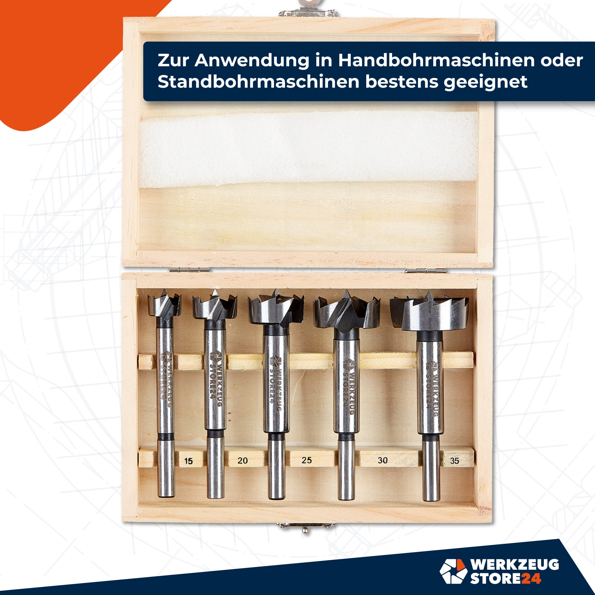 - 1x WS24 Forstnerbohrersatz 5tlg. 15 - 35 mm in Holzkasstette