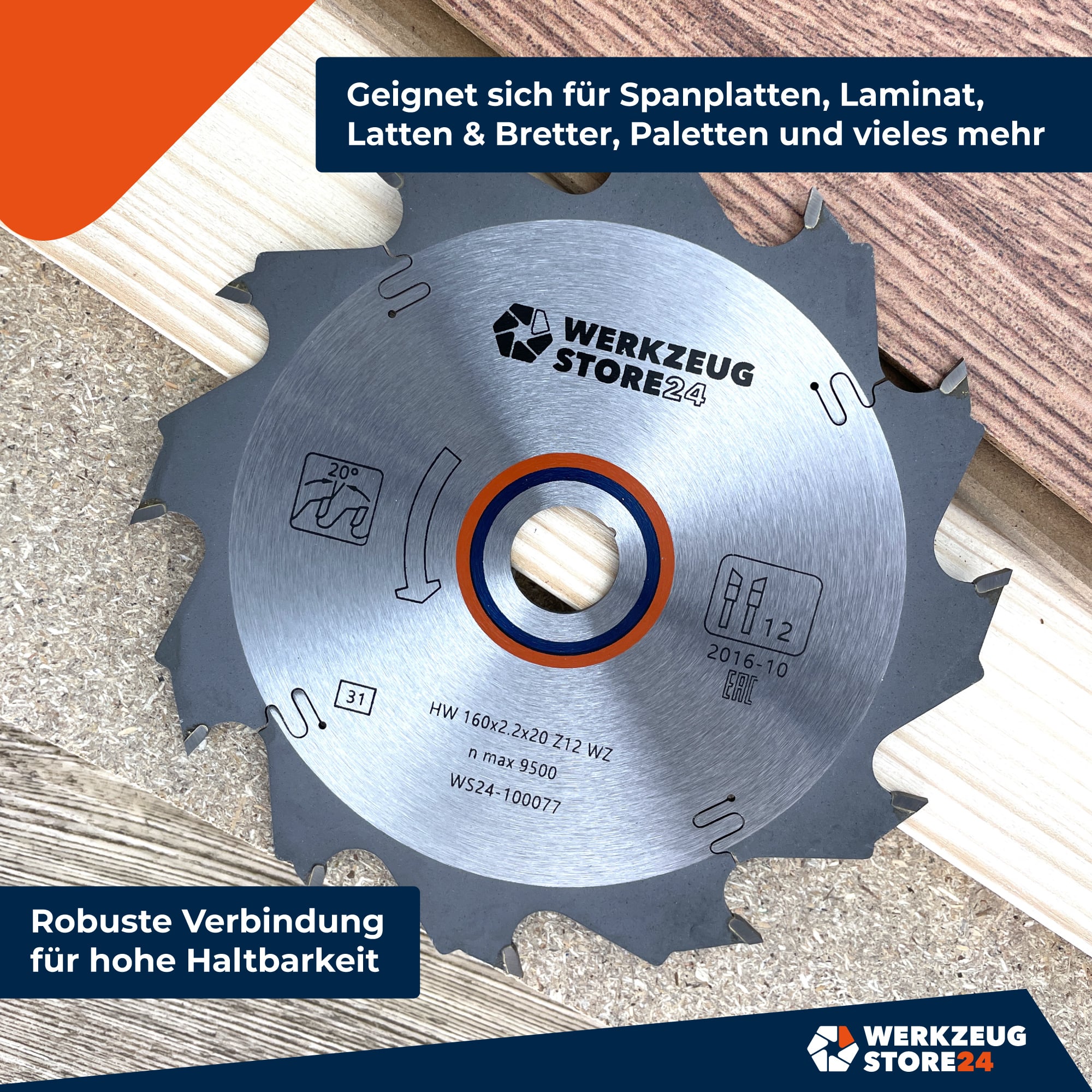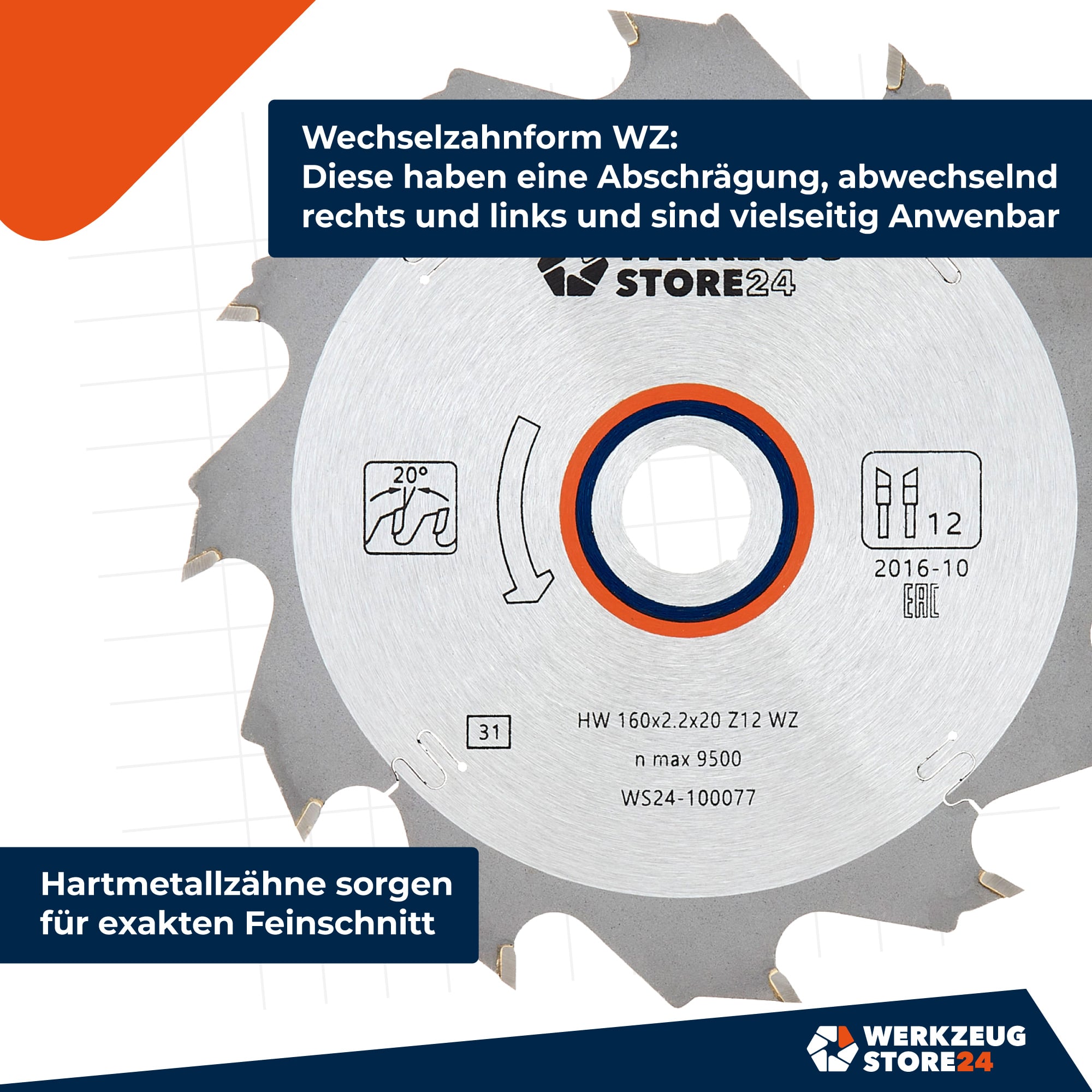 - 1x WS24 HM Kreissägeblatt Holz 160 x 2,2 x 20 WZ 12