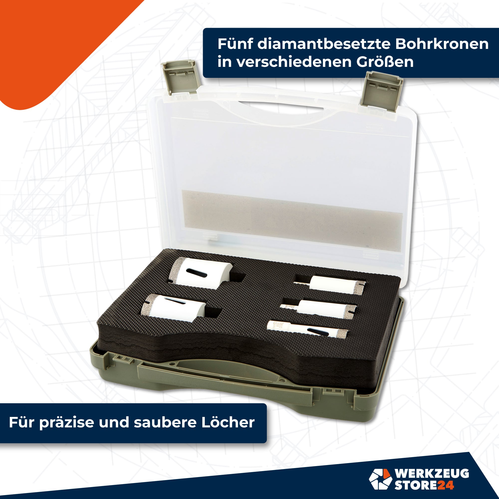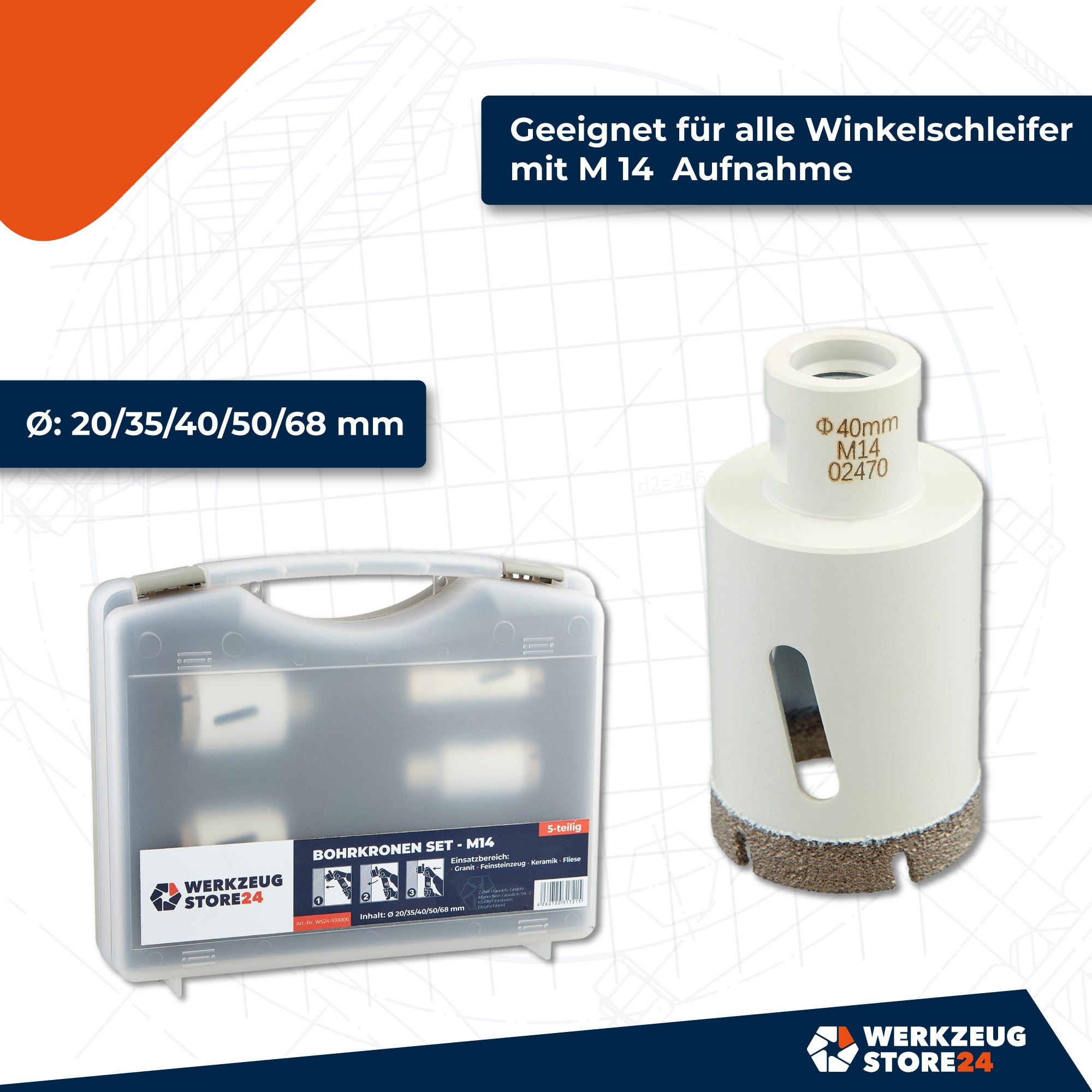 - 1x WS24 M14 Diamantbohrkronen SuperDry Set 5tlg.