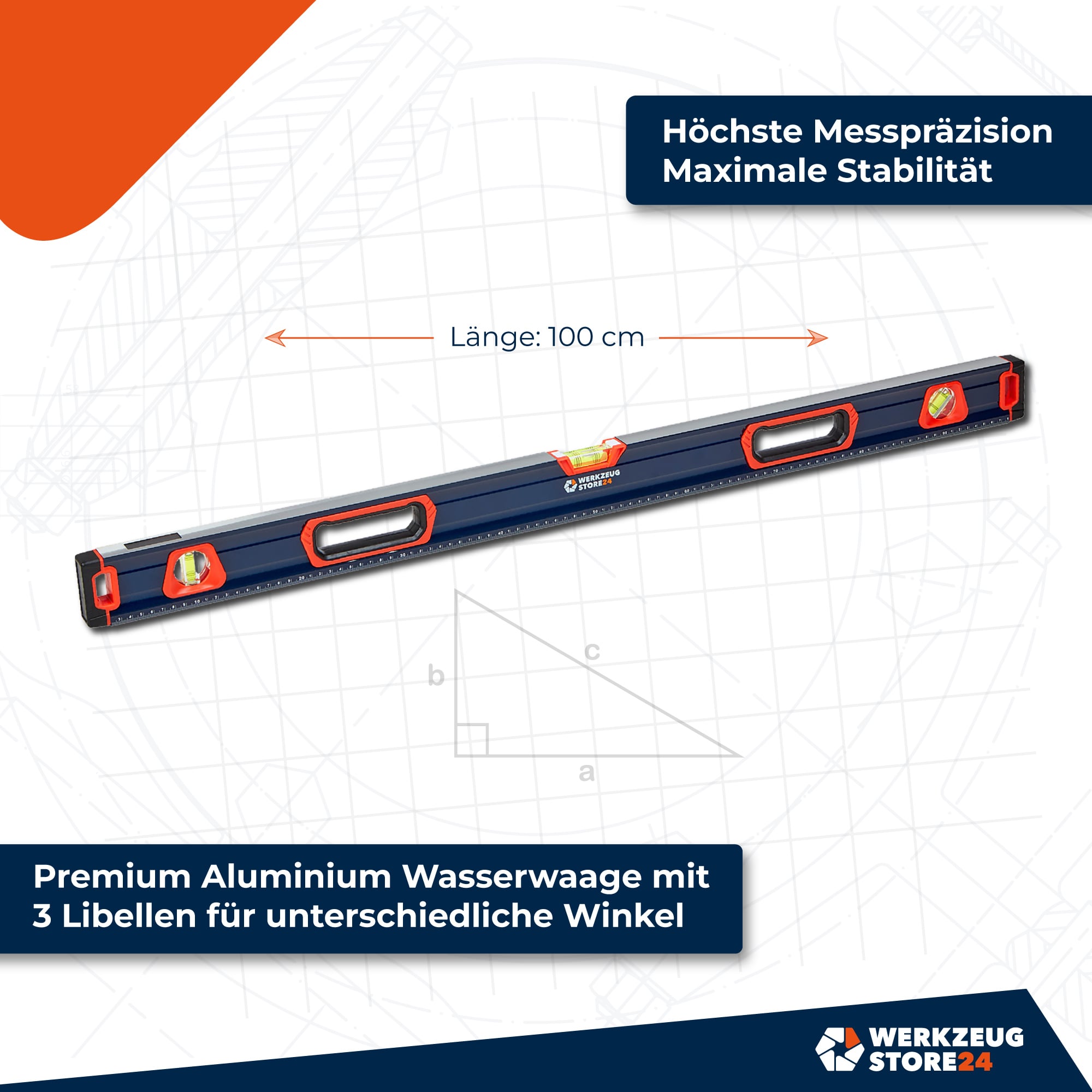 - WS24 Premium Wasserwaage mit 3 Libellen und Magnetfunktion