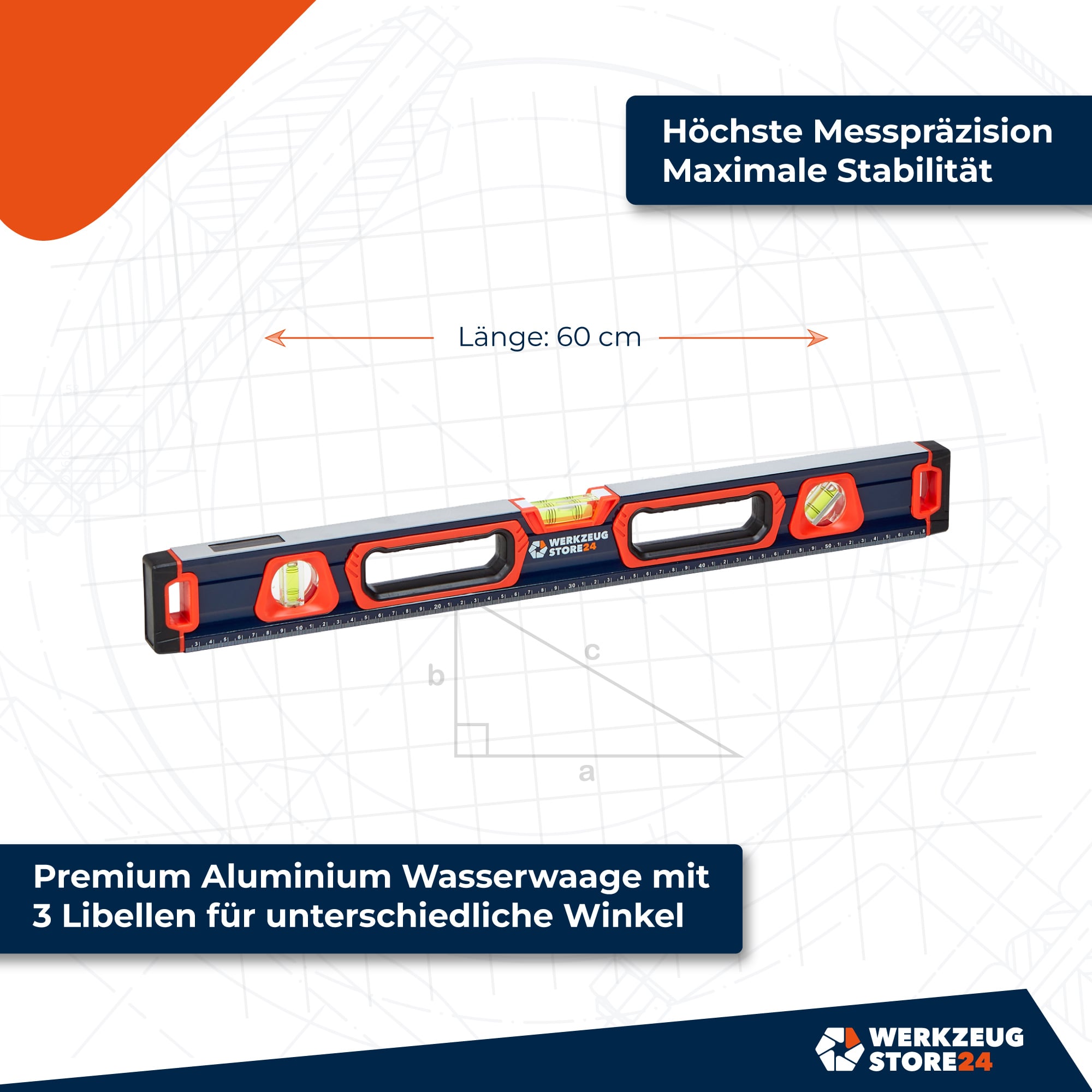 - WS24 Premium Wasserwaage mit 3 Libellen und Magnetfunktion